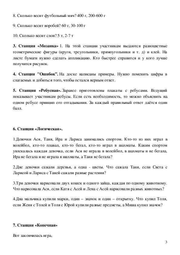 1. Станция «Занимательная». Время зря ты не теряй, на вопросы отвечай!