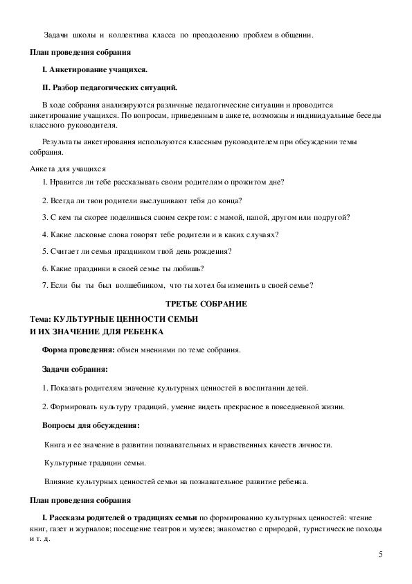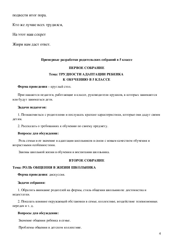 Примерные разработки родительских собраний в 5 классе