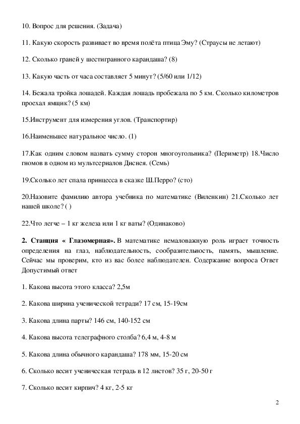 2. Станция « Глазомерная». В математике немаловажную роль играет точность