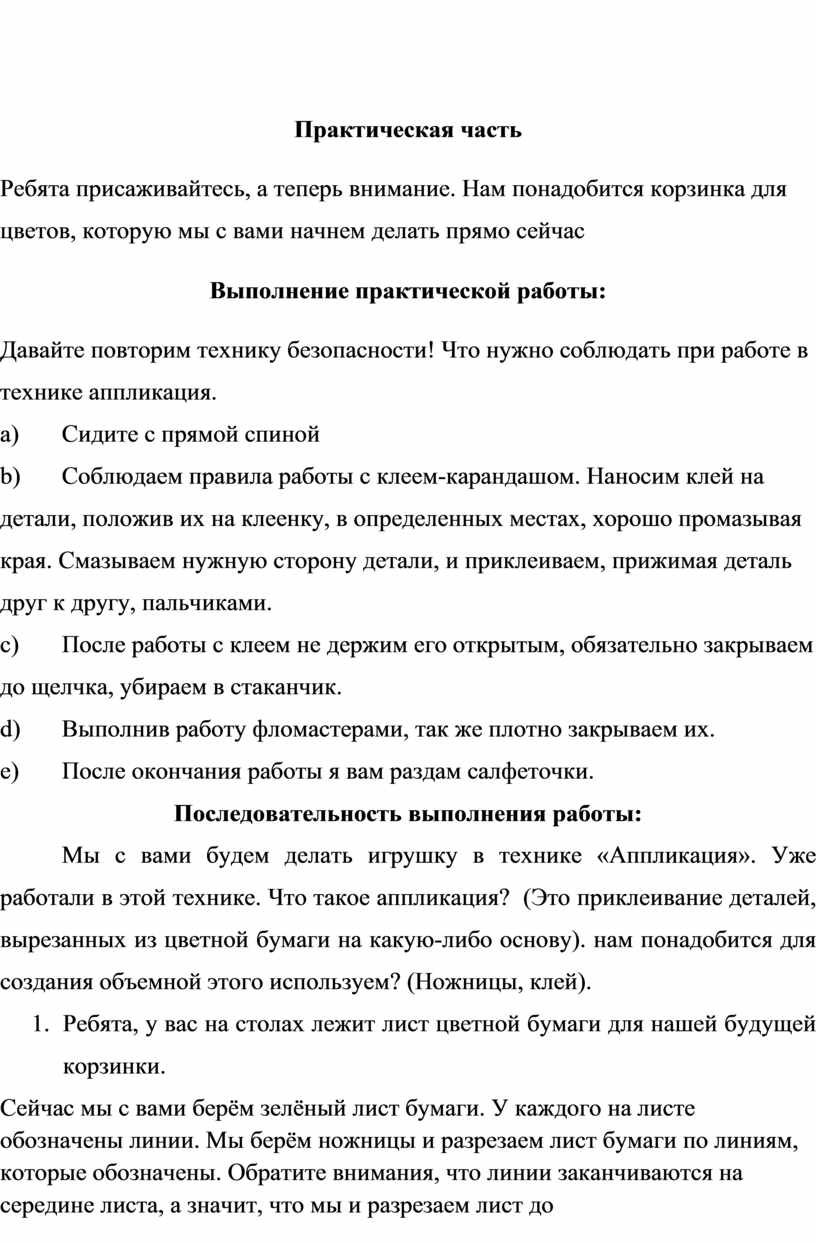 Методы и приёмы, формы организации занятия: беседа, рассказ, объяснение, практическая работа, работа в группе и индивидуально.