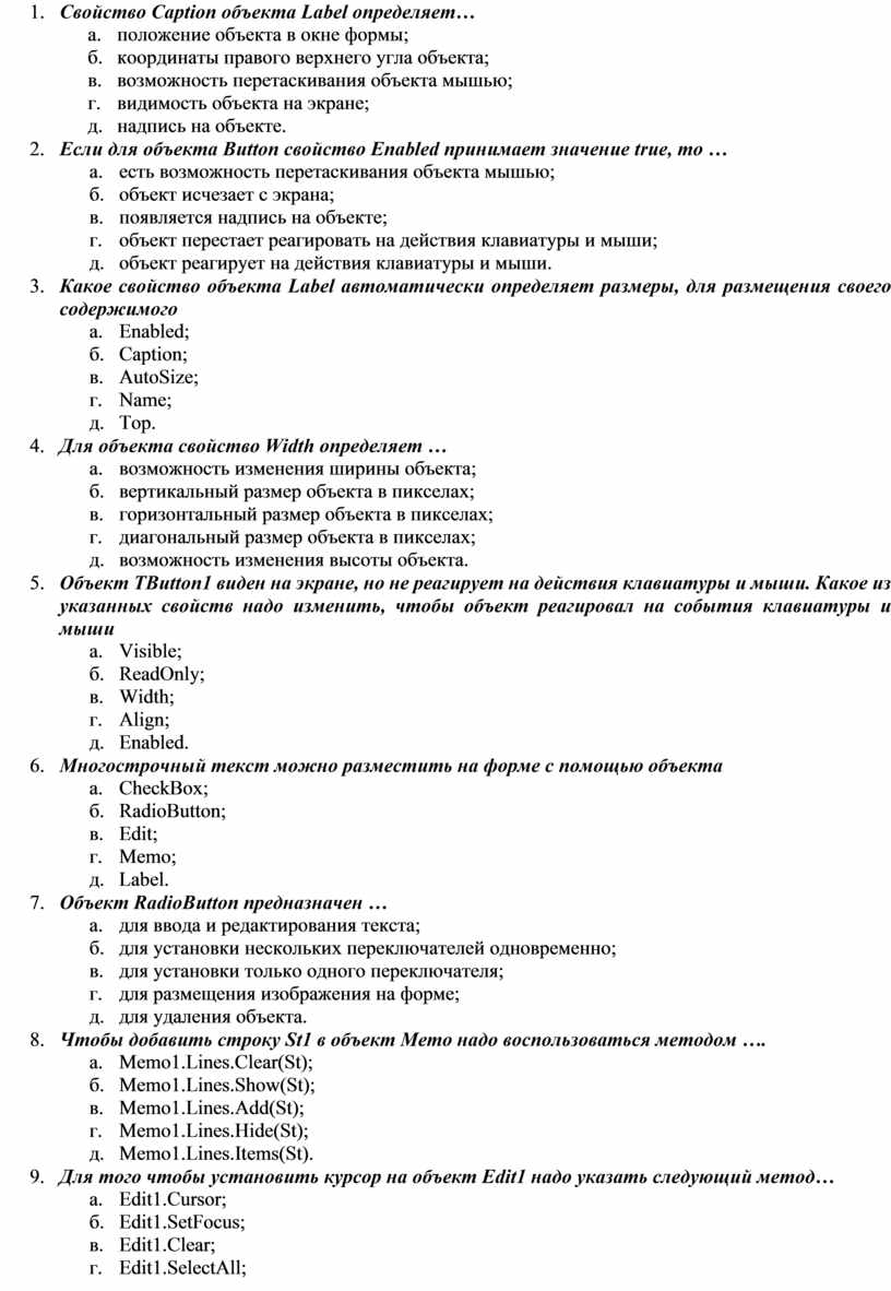 17. Многострочный текст можно разместить на форме с помощью объекта