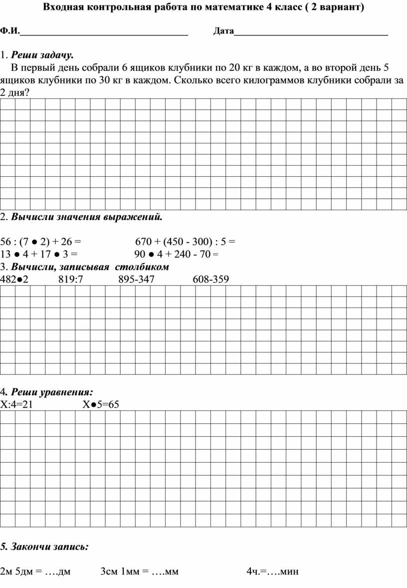 Входная контрольная работа по математике 4 класс ( 2 вариант)