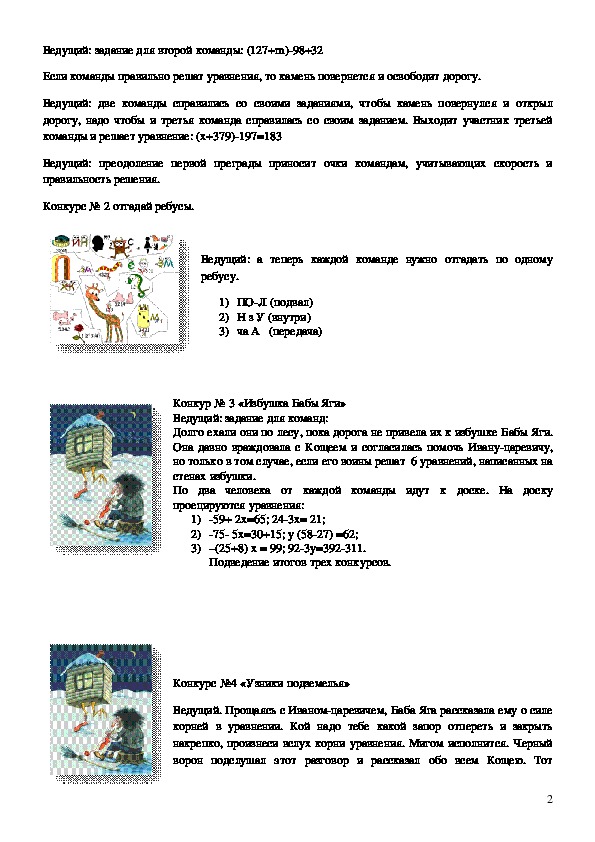 Выходит участник первой команды и решает уравнение: (y371)+ 277= 546Ведущий: задание для второй команды: (127+m)98+32