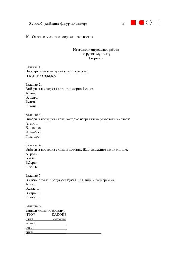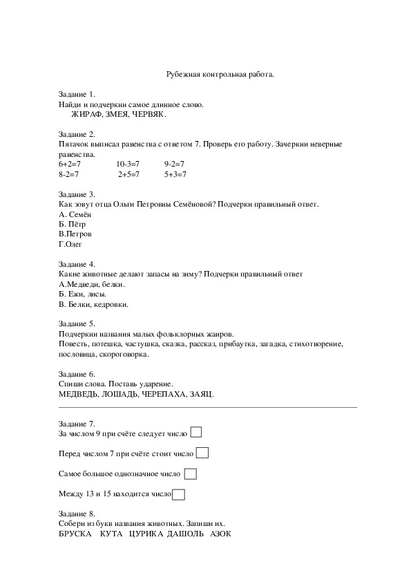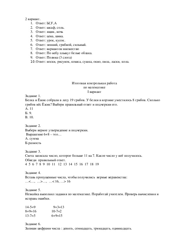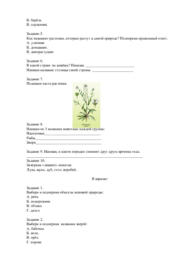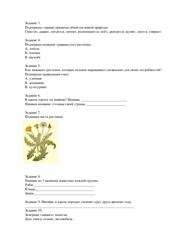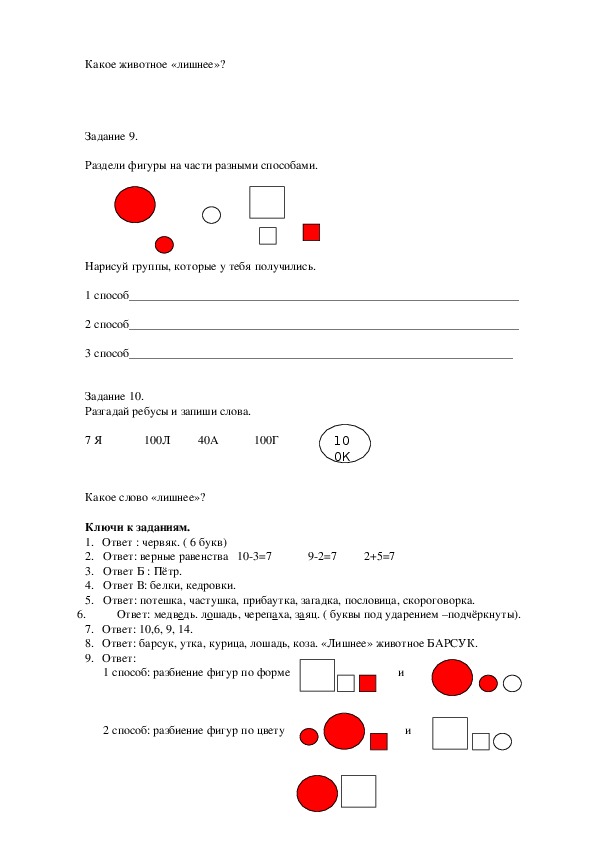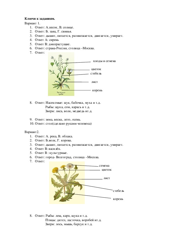 Звери: лось, мышь, барсук и т.д.9. Ответ: зима, весна, лето, осень.
