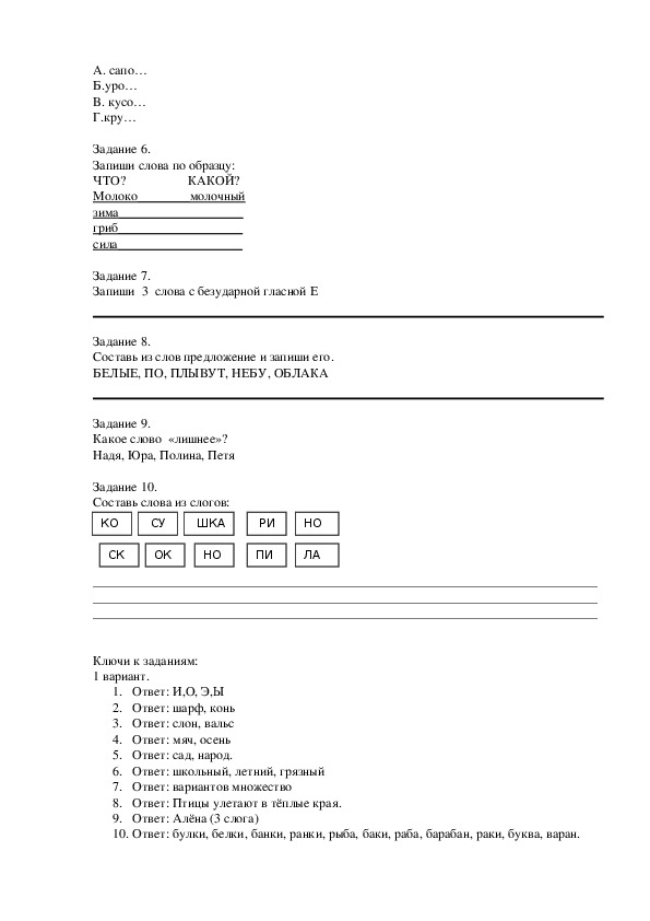 Ж А Я Й Ц О Р О Е ККлючи к заданиям.