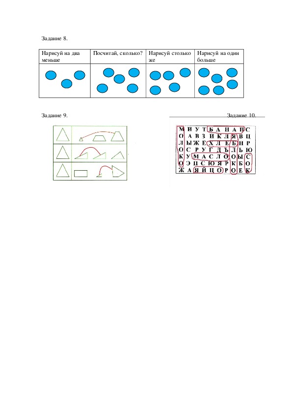 Задание 10. Прочитай названия предметов. Найди эти слова в таблице и обведи. Ищи по