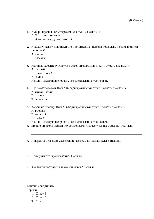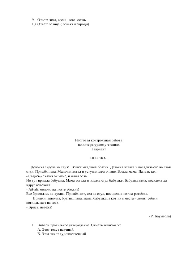Б. Этот текст художественный2. К какому жанру относится это произведение. Выбери правильный ответ и отметь