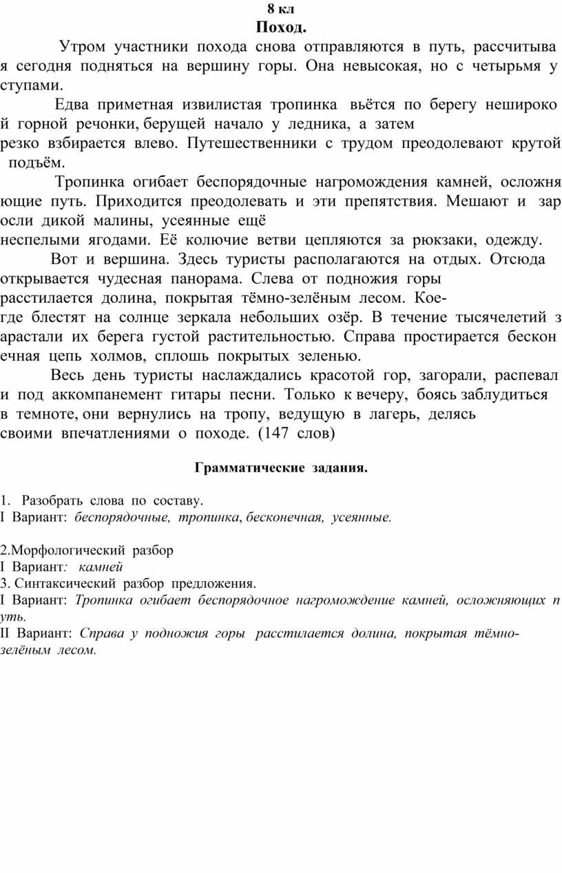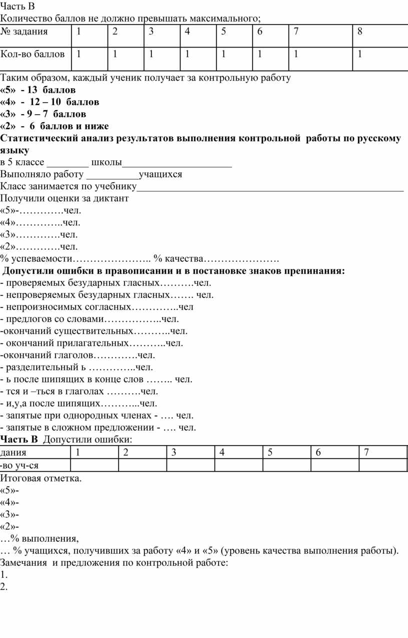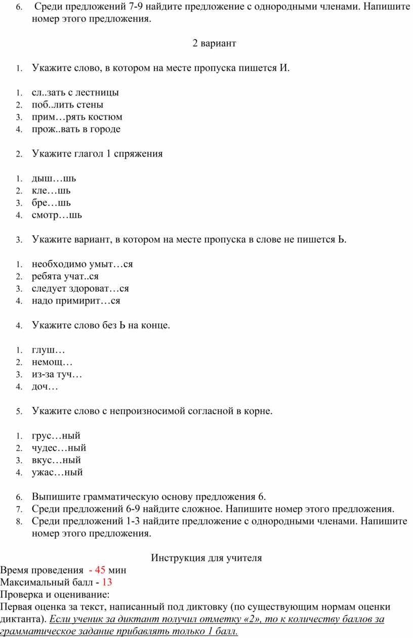 Первая оценка за текст, написанный под диктовку (по существующим нормам оценки диктанта). Если ученик за диктант получил отметку «2», то к количеству баллов за грамматическое задание прибавлять только 1 балл.