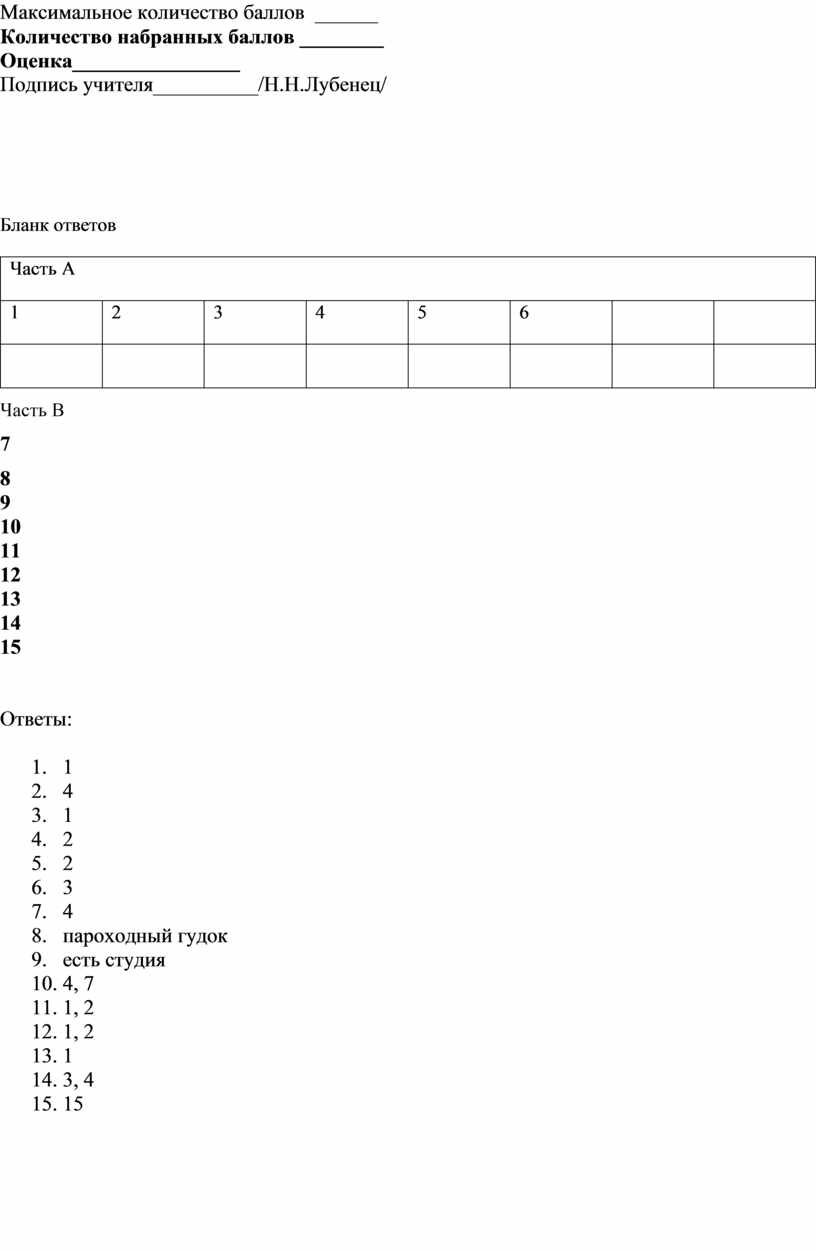 Ответы к тесту: