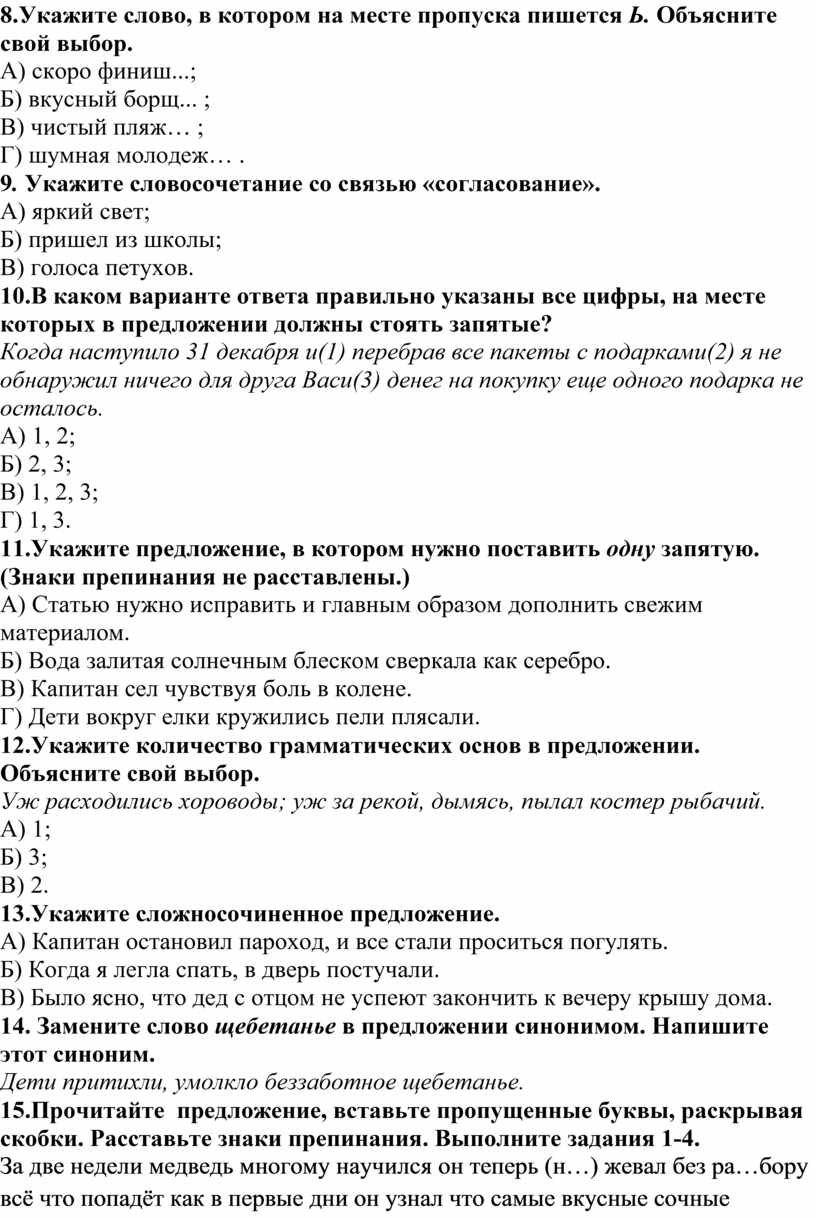 8.Укажите слово, в котором на месте пропуска пишется Ь. Объясните свой выбор.