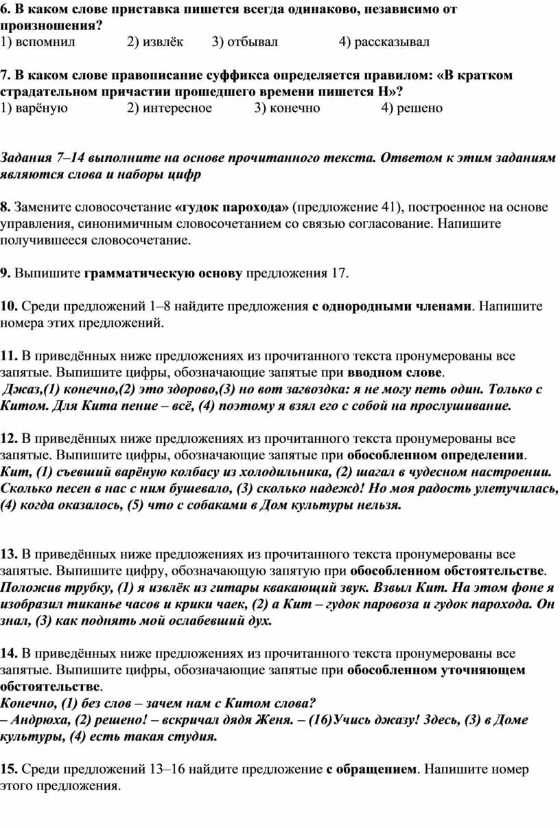 Грамматическое задание