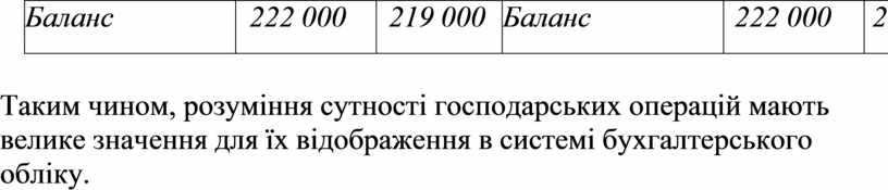 Таким чином, розуміння сутності господарських операцій мають велике значення для їх відображення в системі бухгалтерського обліку.
