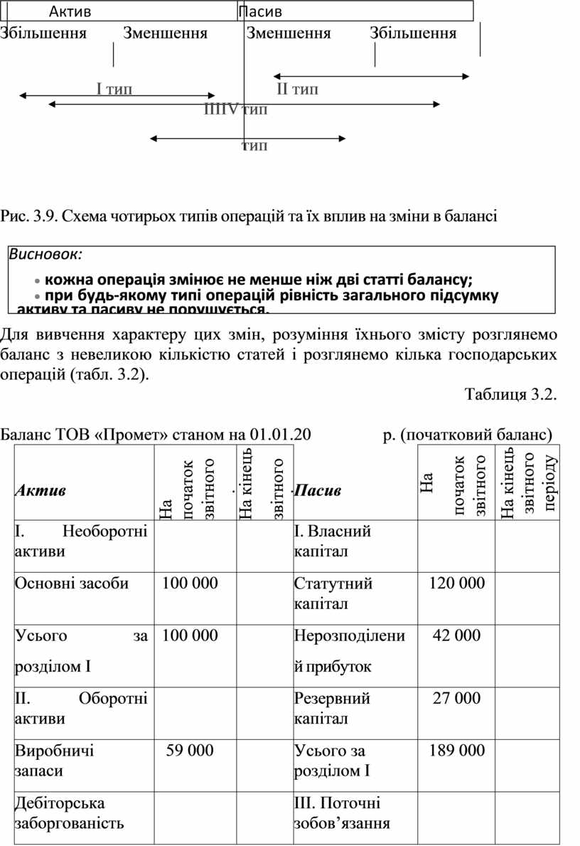 Схематично зміни в балансі під впливом чотирьох типів операцій можна зобразити так (рис. 3.9).