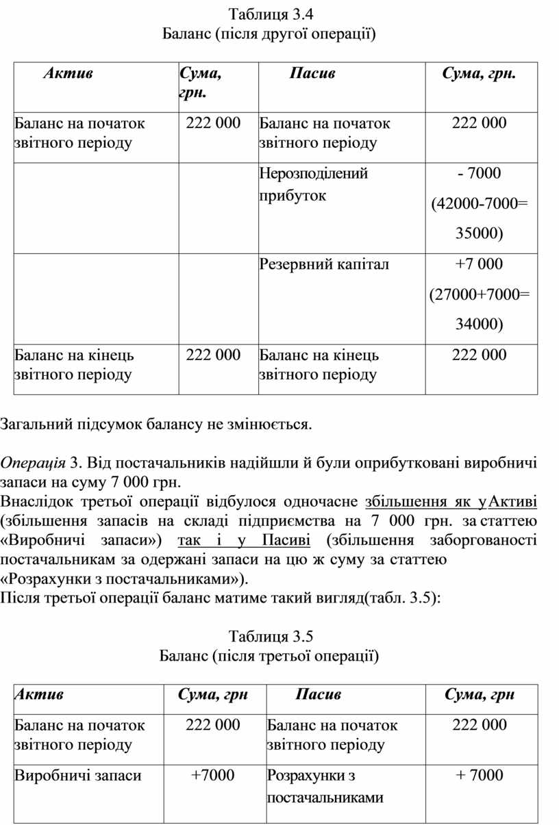 Після третьої операції баланс матиме такий вигляд(табл. 3.5):