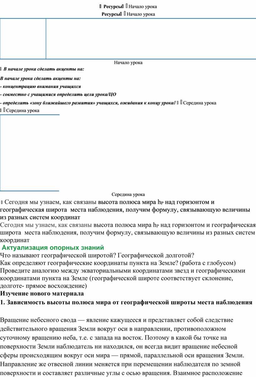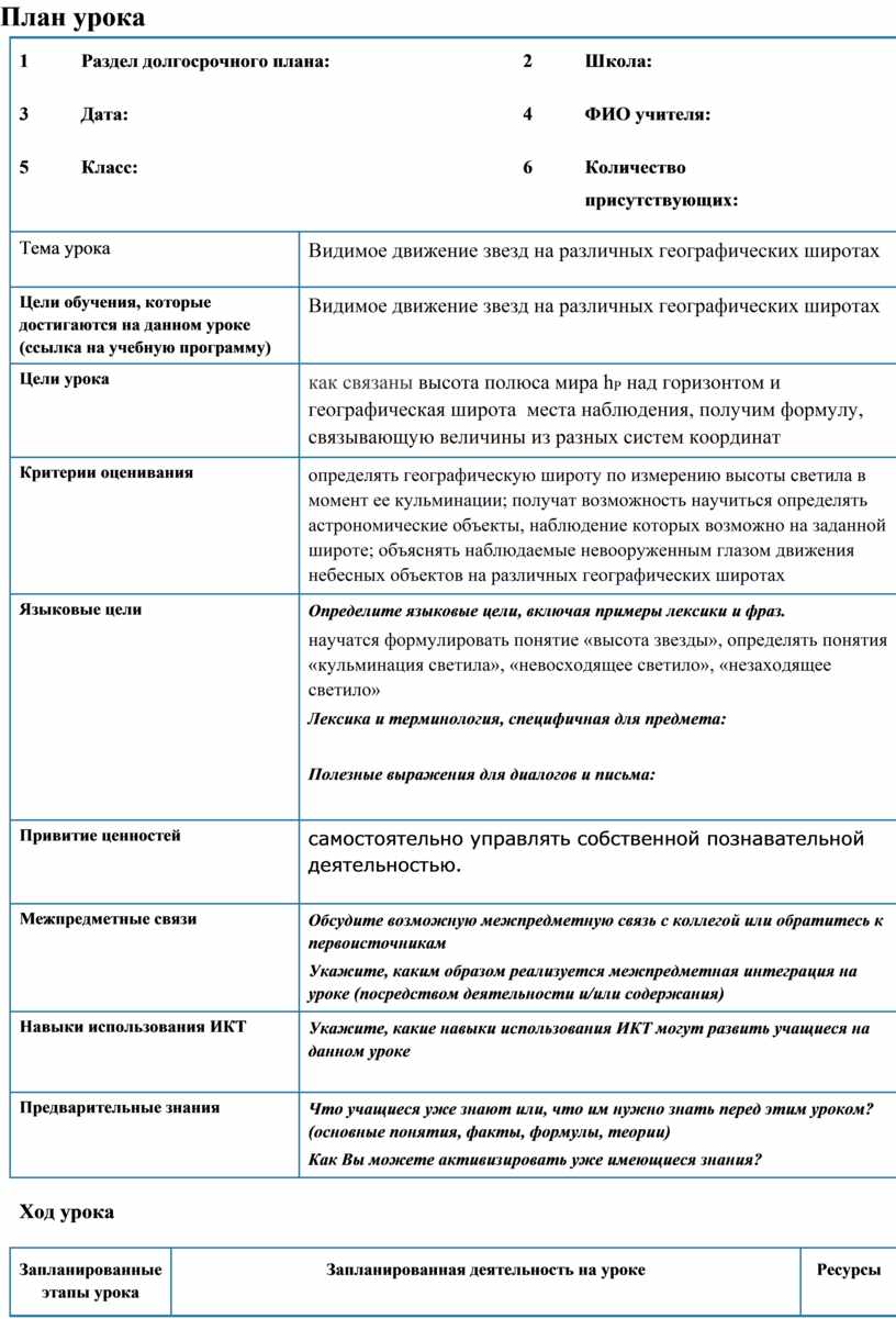 Определите языковые цели, включая примеры лексики и фраз. научатся формулировать понятие «высота звезды», определять понятия «кульминация светила», «невосходящее светило», «незаходящее светило» Лексика и терминология, специфичная для предмета: