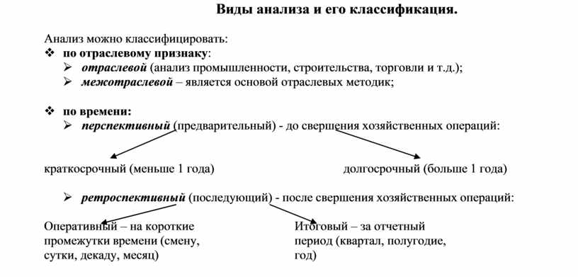 Виды анализа и его классификация.