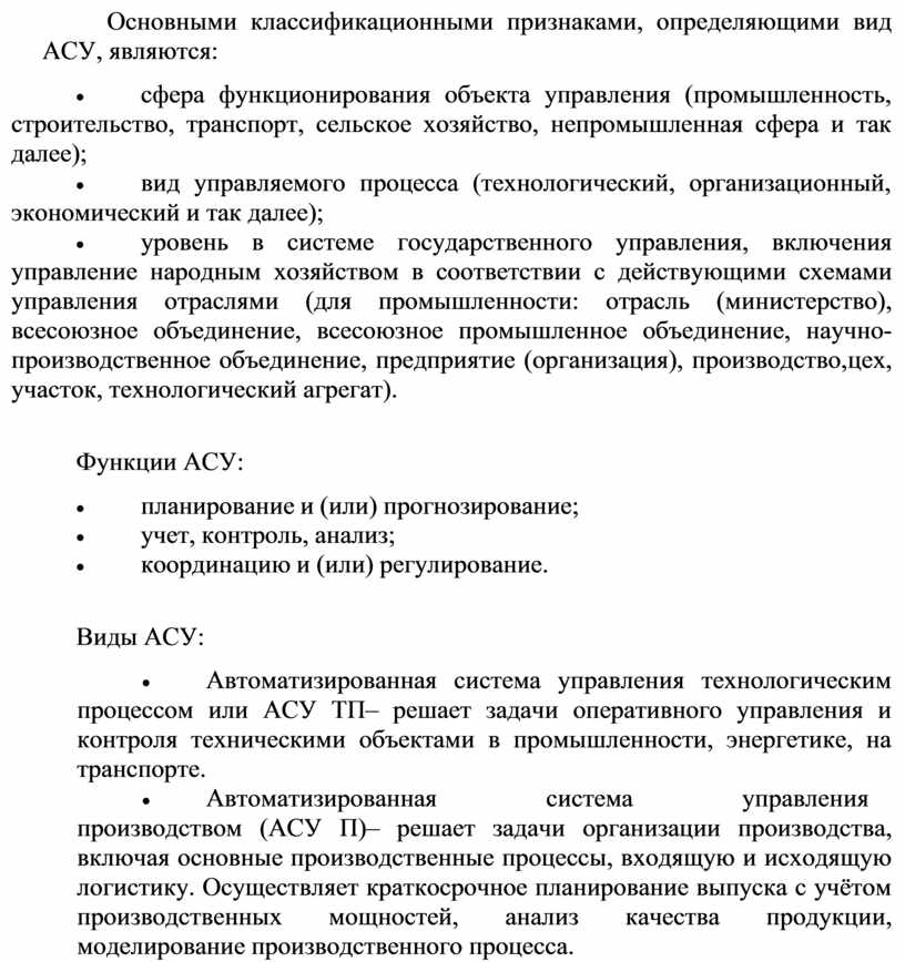 Основными классификационными признаками, определяющими вид АСУ, являются:
