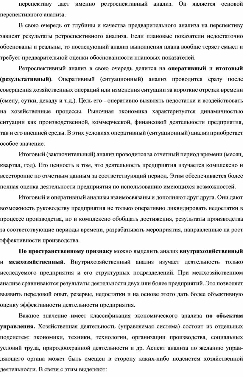 Классификация видов экономического анализа имеет важное значение для правильного понимания его содержания и задач.