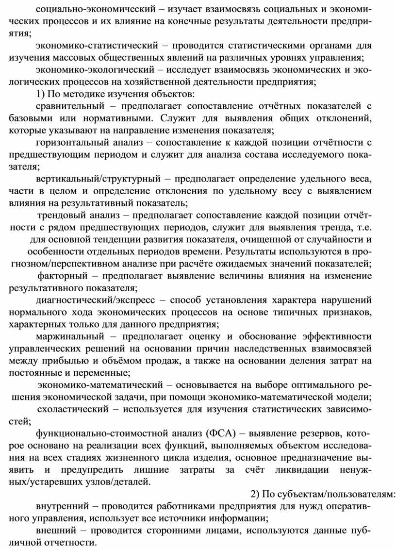 технико-экономический анализ – изучает взаимодействие технических и экономических процессов и устанавливает их влияние на экономические ре- зультаты деятельности предприятия;