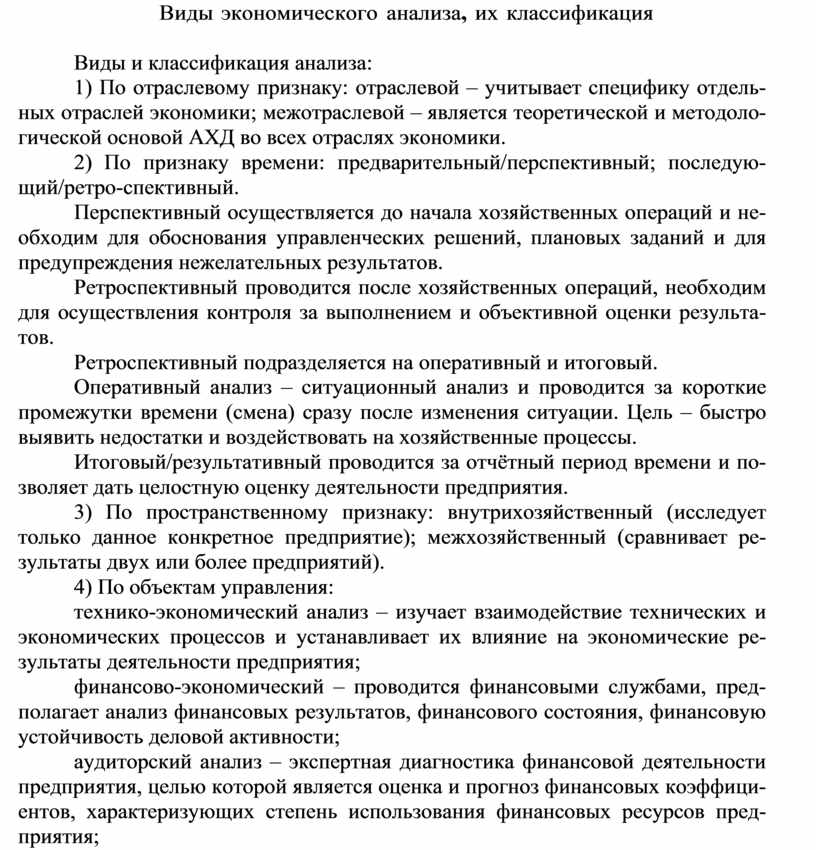 3) По пространственному признаку: внутрихозяйственный (исследует только данное конкретное предприятие); межхозяйственный (сравнивает ре- зультаты двух или более предприятий).