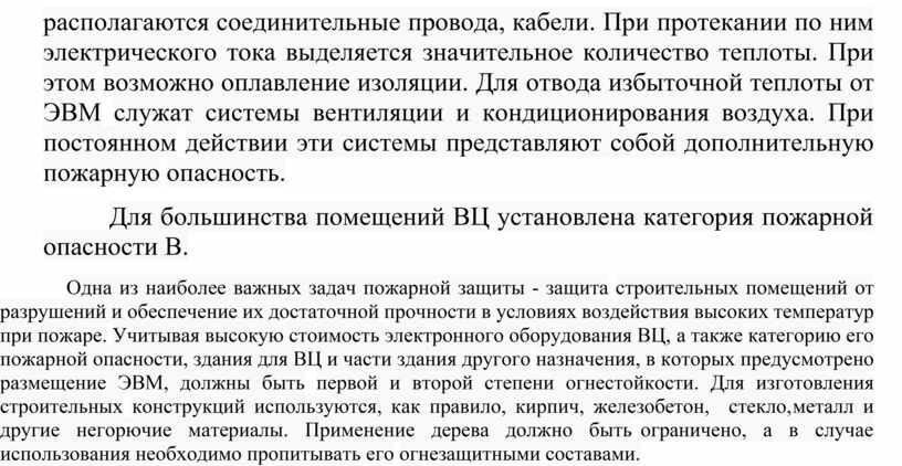 Для большинства помещений ВЦ установлена категория пожарной опасности В.