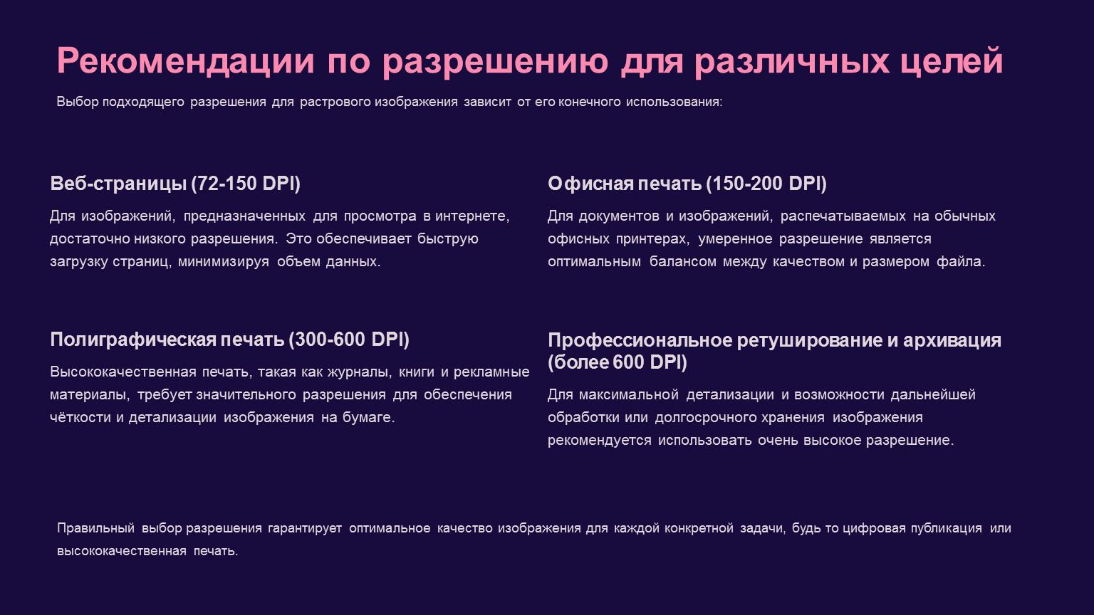 Выбор подходящего разрешения для растрового изображения зависит от его конечного использования: