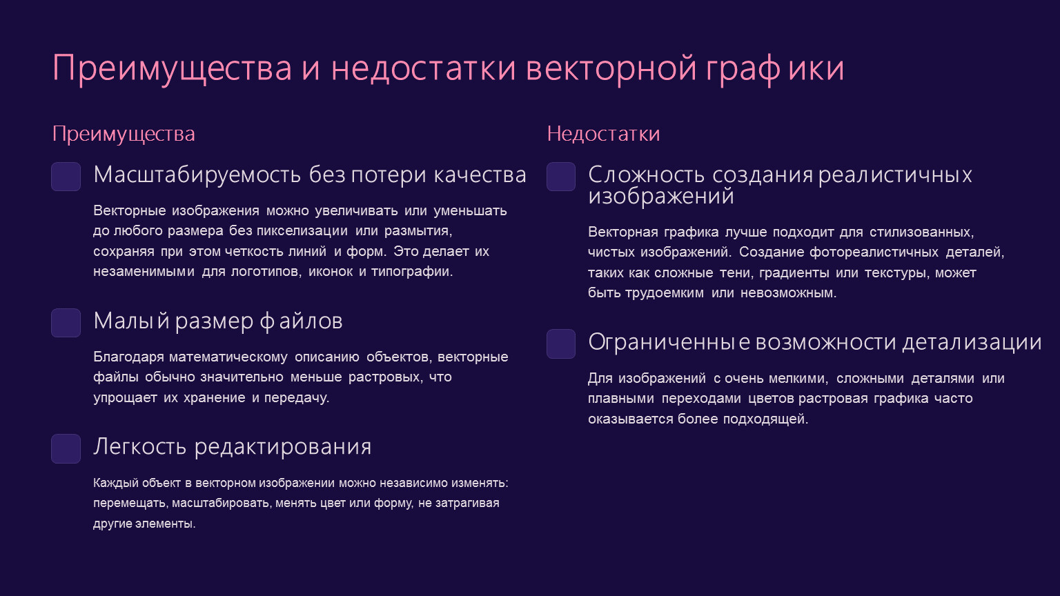 Преимущества и недостатки векторной графики