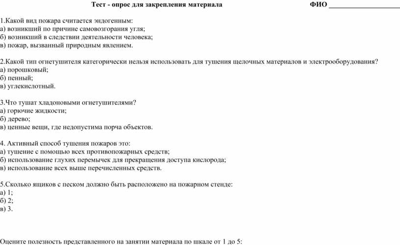 Тест - опрос для закрепления материала ФИО ____________________