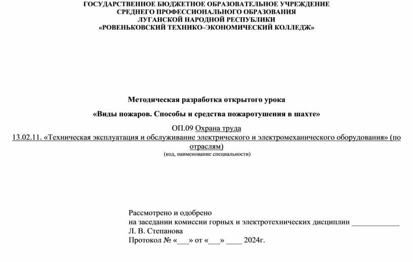 на заседании комиссии горных и электротехнических дисциплин ____________ Л. В. Степанова