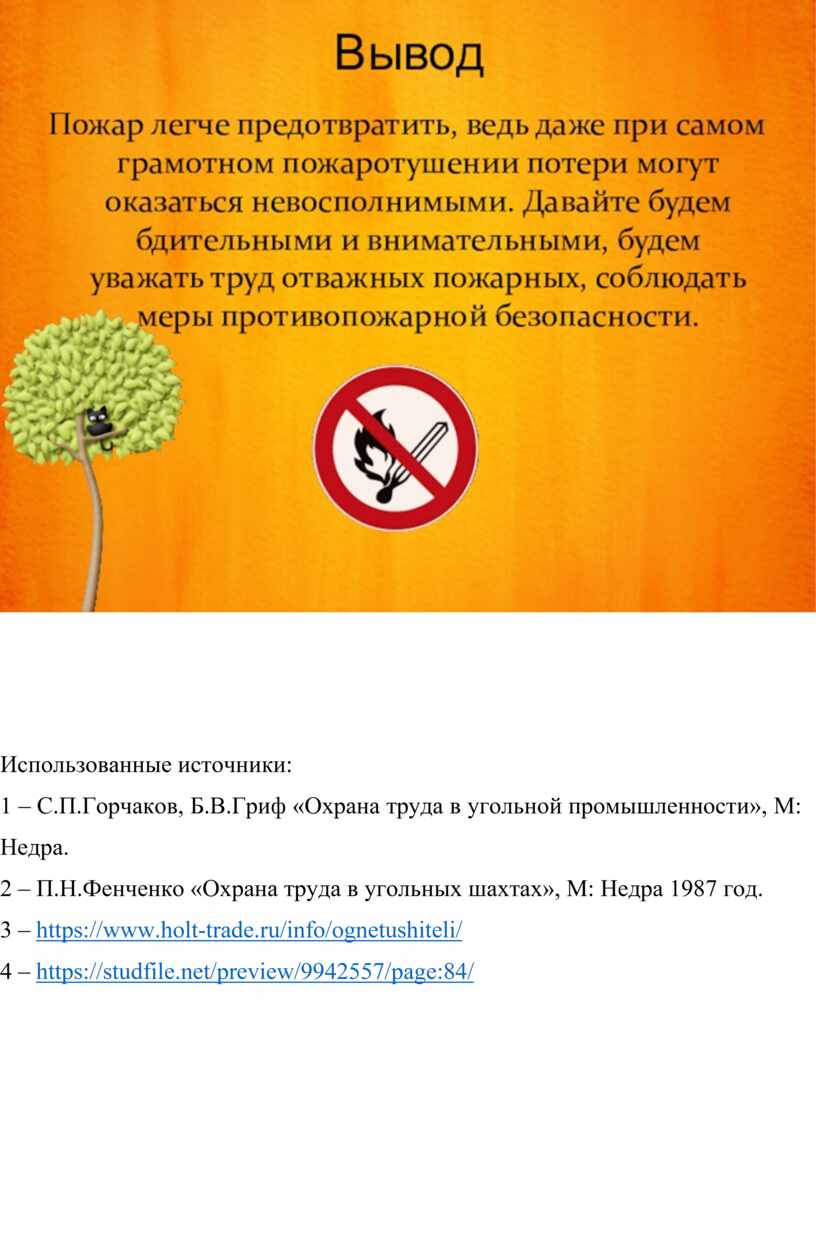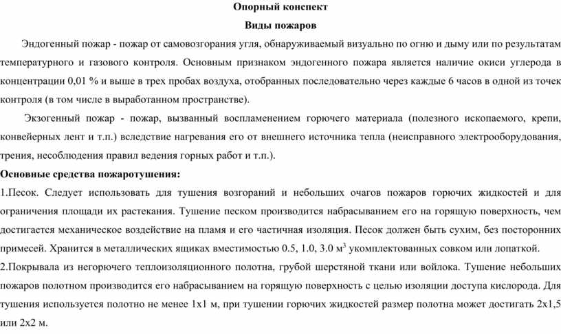 «Виды пожаров. Способы и средства пожаротушения в шахте»