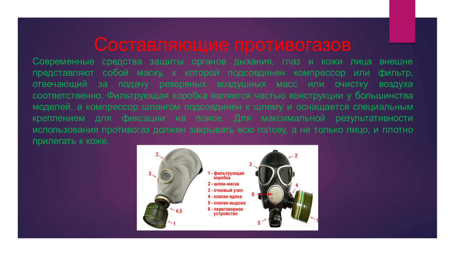 Противогаз – это средство для личной защиты органов дыхания, глаз и кожи лица, от различных отравляющих веществ, испаренных в воздухе в результате техногенных аварий и катастроф, военных и других чрезвычайных ситуаций. И хотя многие не надевают противогаз нигде, кроме как на занятиях, он вполне способен спасти человеку жизнь в критической ситуации. Эти средства индивидуальной защиты являются частью снаряжения у представителей ряда гражданских специальностей и военных, чья деятельность подразумевает контакт с токсичными опасными веществами.