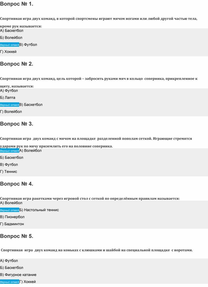 Верный ответВ) Футбол
