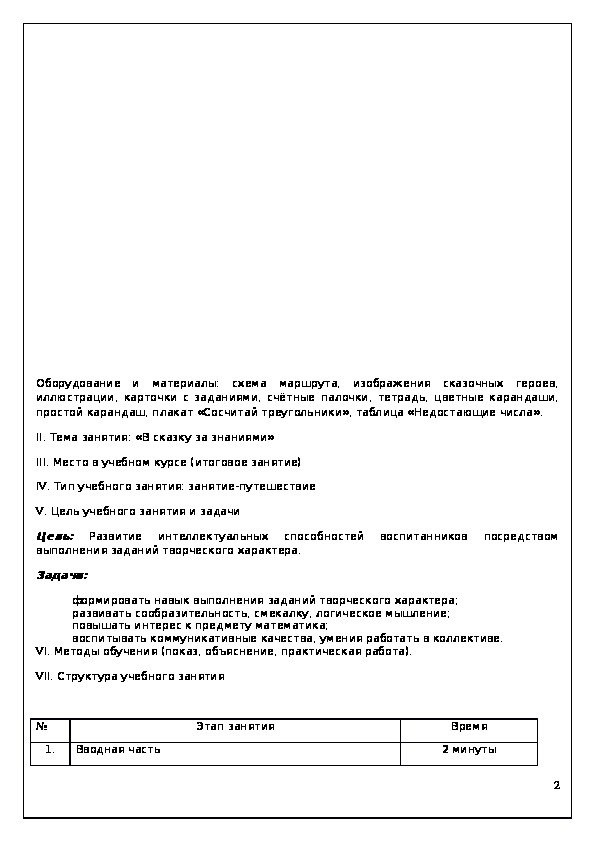 VII. Структура учебного занятия
