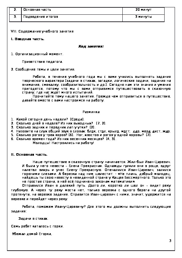 VIII. Содержание учебного занятия