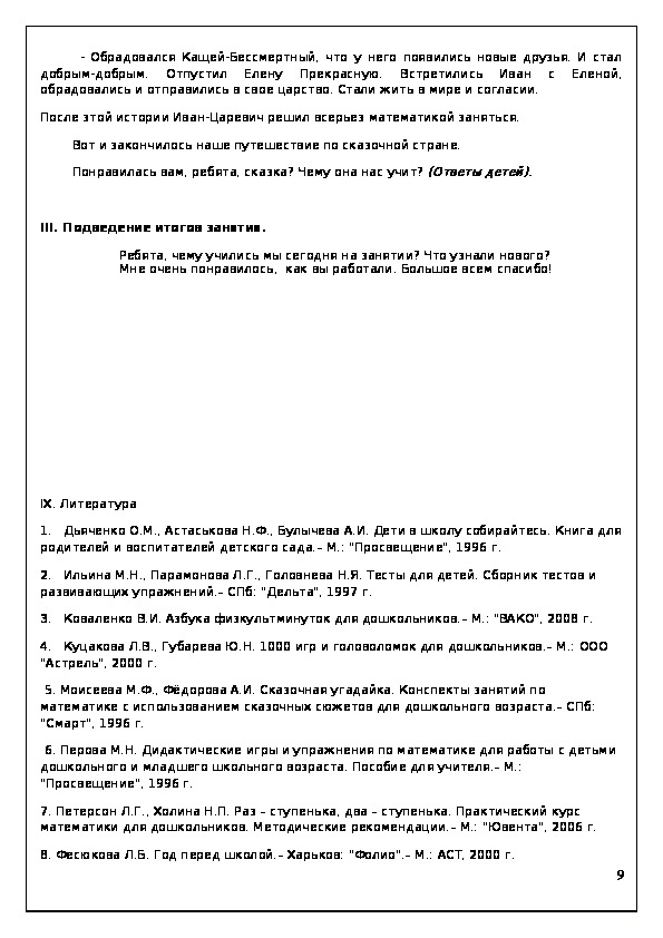математики для дошкольников. Методические рекомендации.– М.: "Ювента", 2006 г.