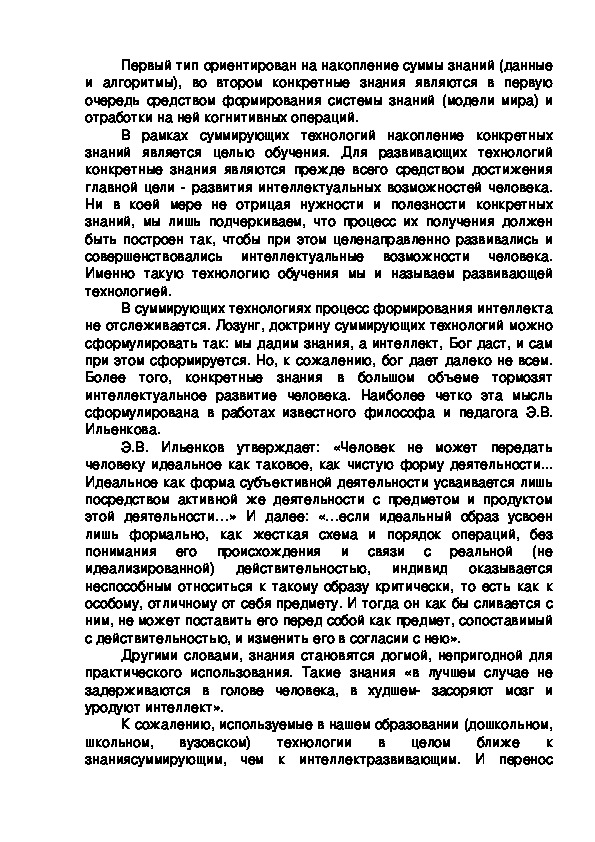 дальнейшем просто суммирующие и развивающие технологии).Первый тип ориентирован на накопление суммы знаний (данные