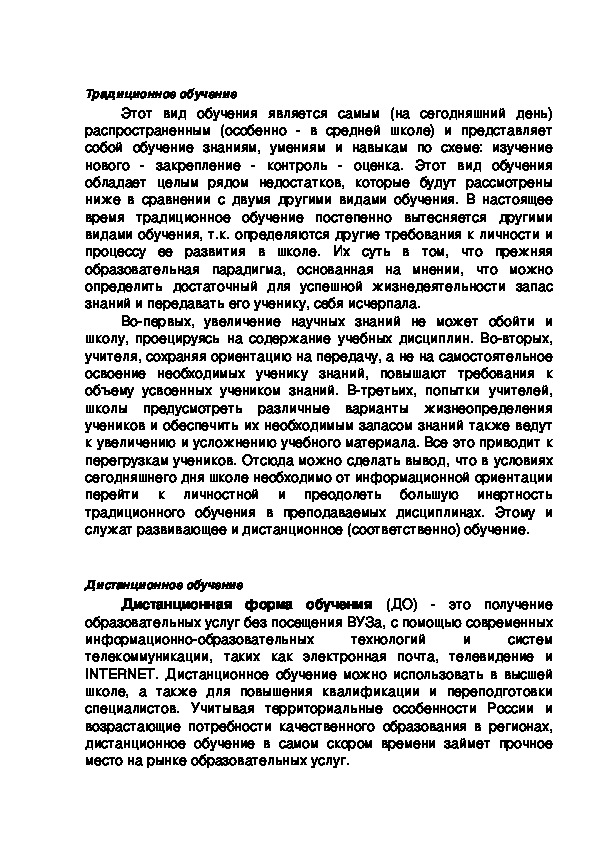 обучения. В реферате будут рассмотрены три из них: традиционное,
