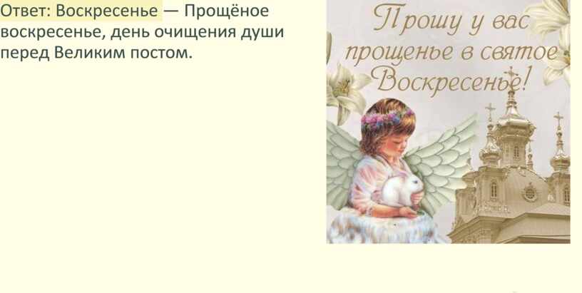 Прощёное воскресенье, день очищения души перед Великим постом.