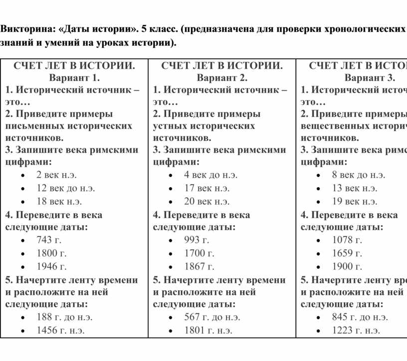 СЧЕТ ЛЕТ В ИСТОРИИ. Вариант 3. 1. Исторический источник – это… 2. Приведите примеры вещественных исторических источников. 3. Запишите века римскими цифрами: