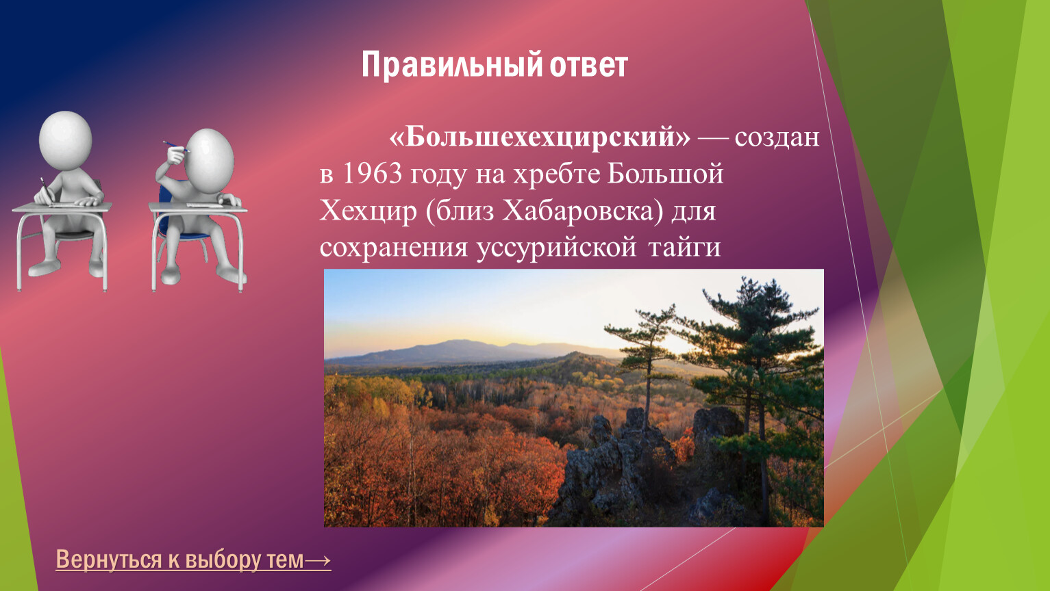 Как называется заповедник на хребте Большой Хехцир (близ Хабаровска)?