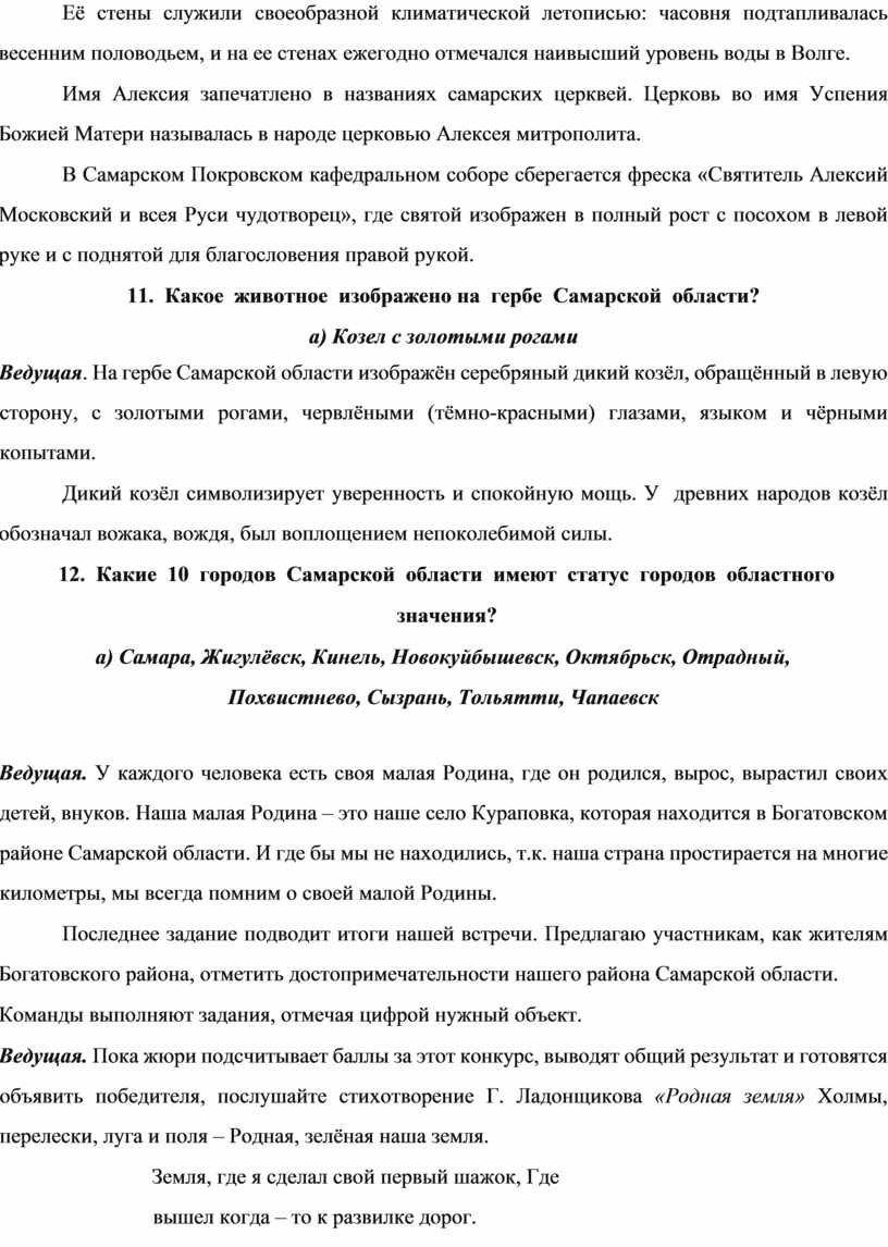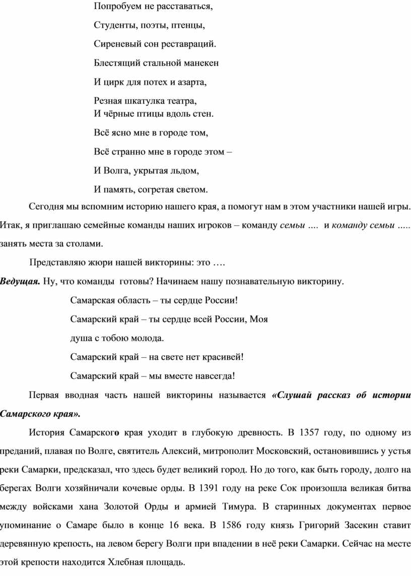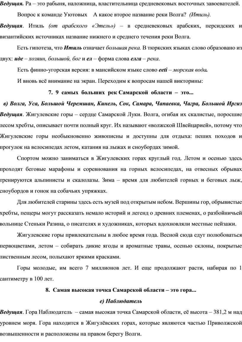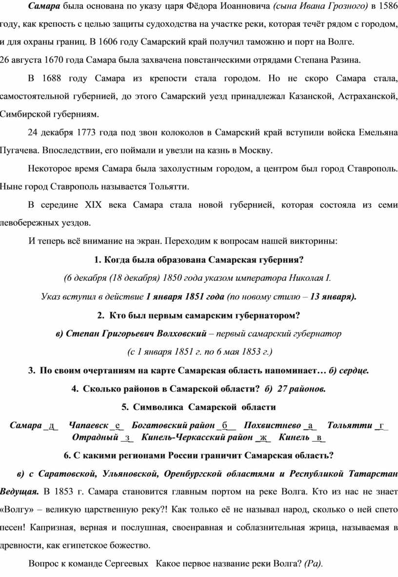 Первая вводная часть нашей викторины называется «Слушай рассказ об истории Самарского края».