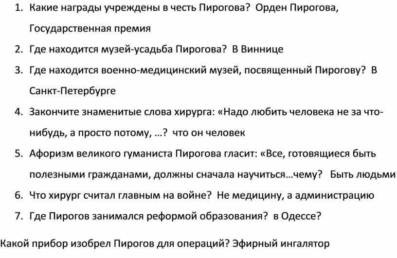23.Какие награды учреждены в честь Пирогова? Орден Пирогова, Государственная премия