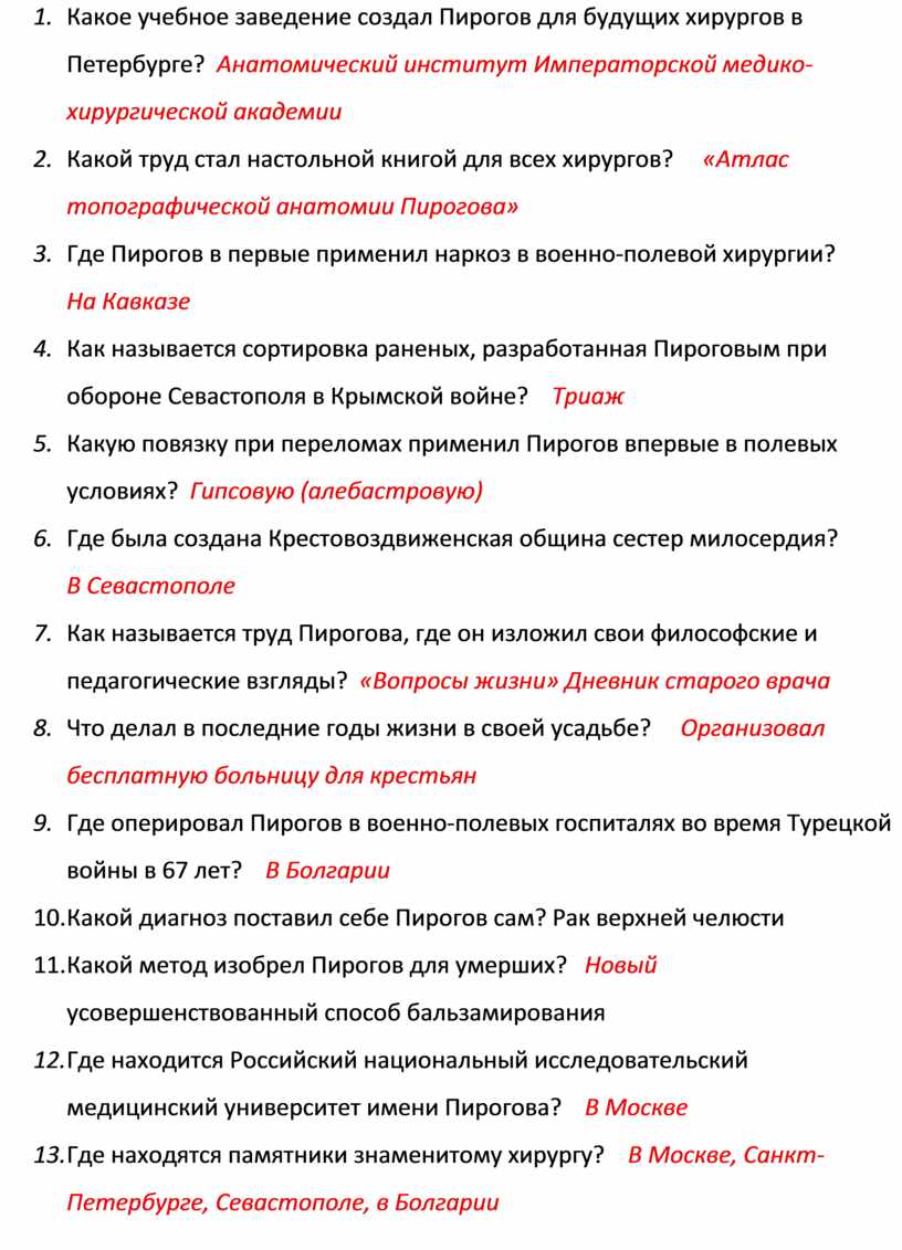 10.Какое учебное заведение создал Пирогов для будущих хирургов в Петербурге? Анатомический институт Императорской медико-хирургической академии