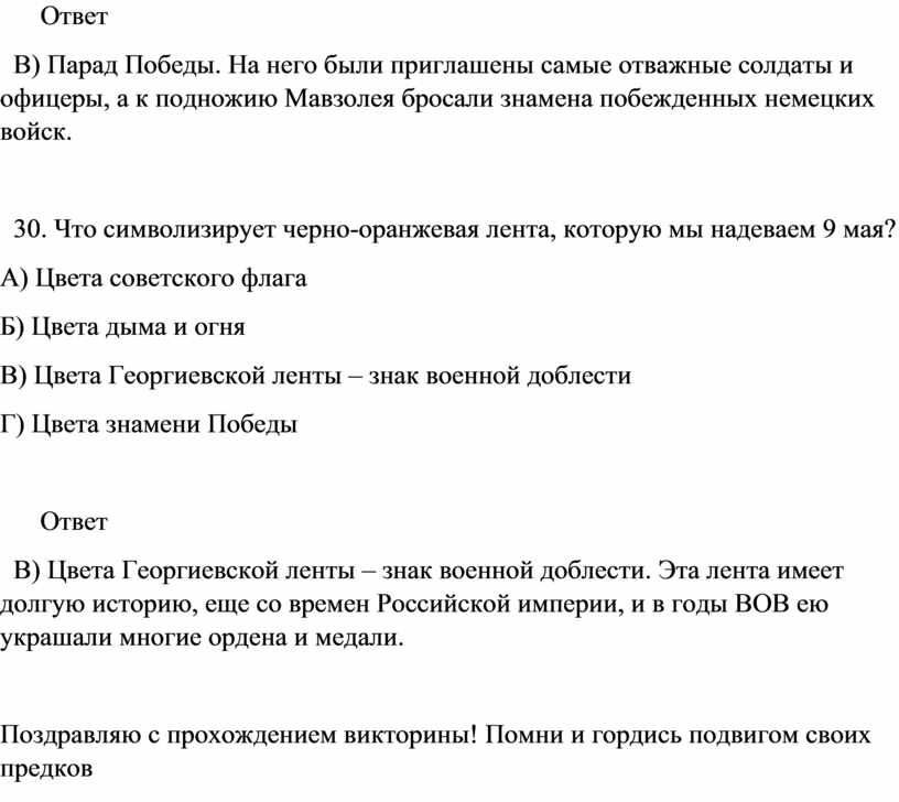 30. Что символизирует черно-оранжевая лента, которую мы надеваем 9 мая?