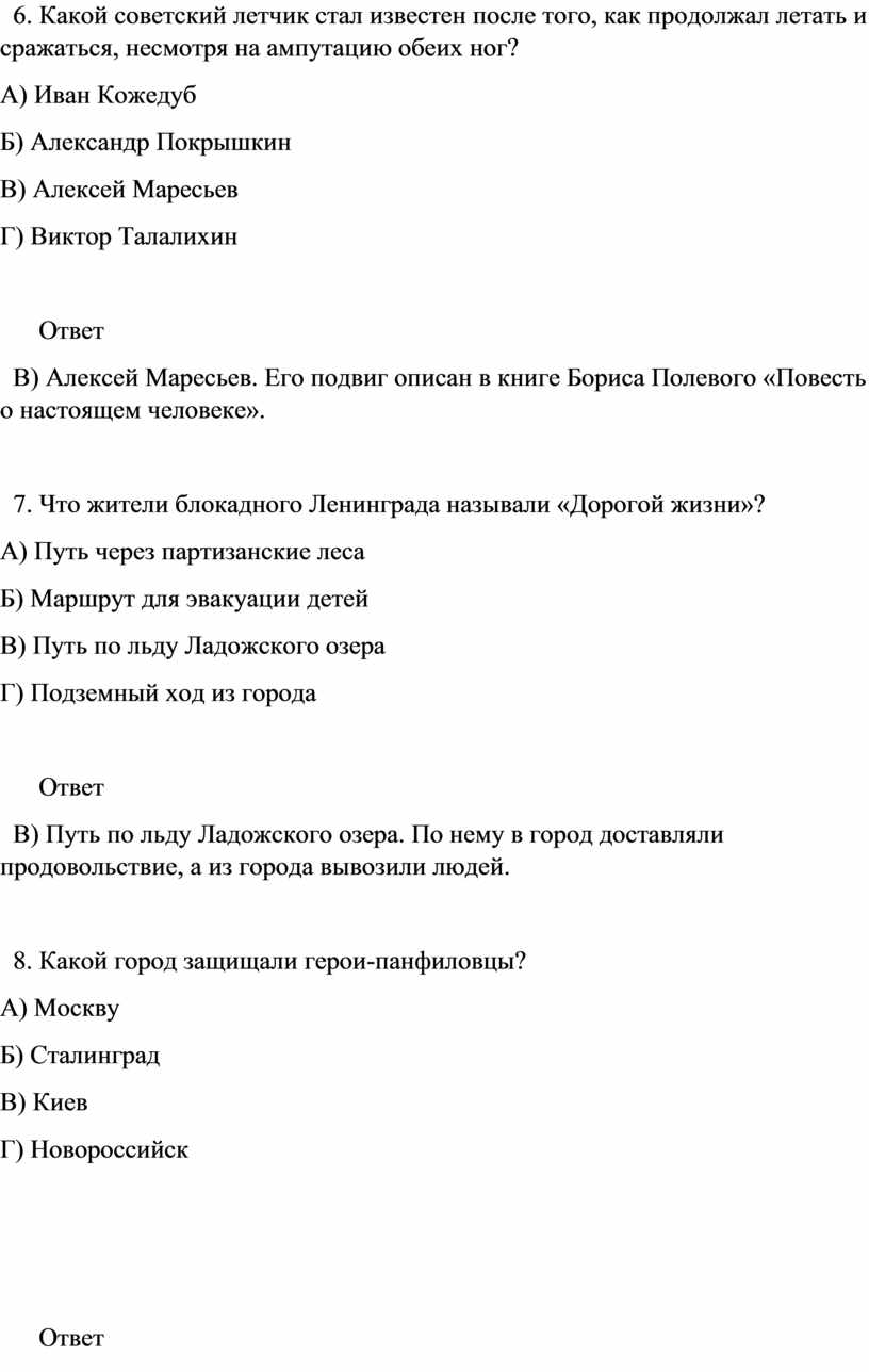 6. Какой советский летчик стал известен после того, как продолжал летать и сражаться, несмотря на ампутацию обеих ног?