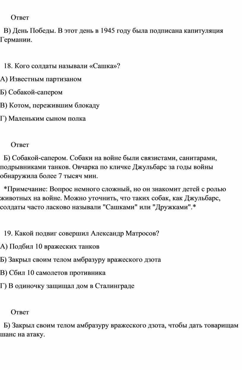 *Примечание: Вопрос немного сложный, но он знакомит детей с ролью животных на войне. Можно уточнить, что таких собак, как Джульбарс, солдаты часто ласково называли "Сашками" или "Дружками".*