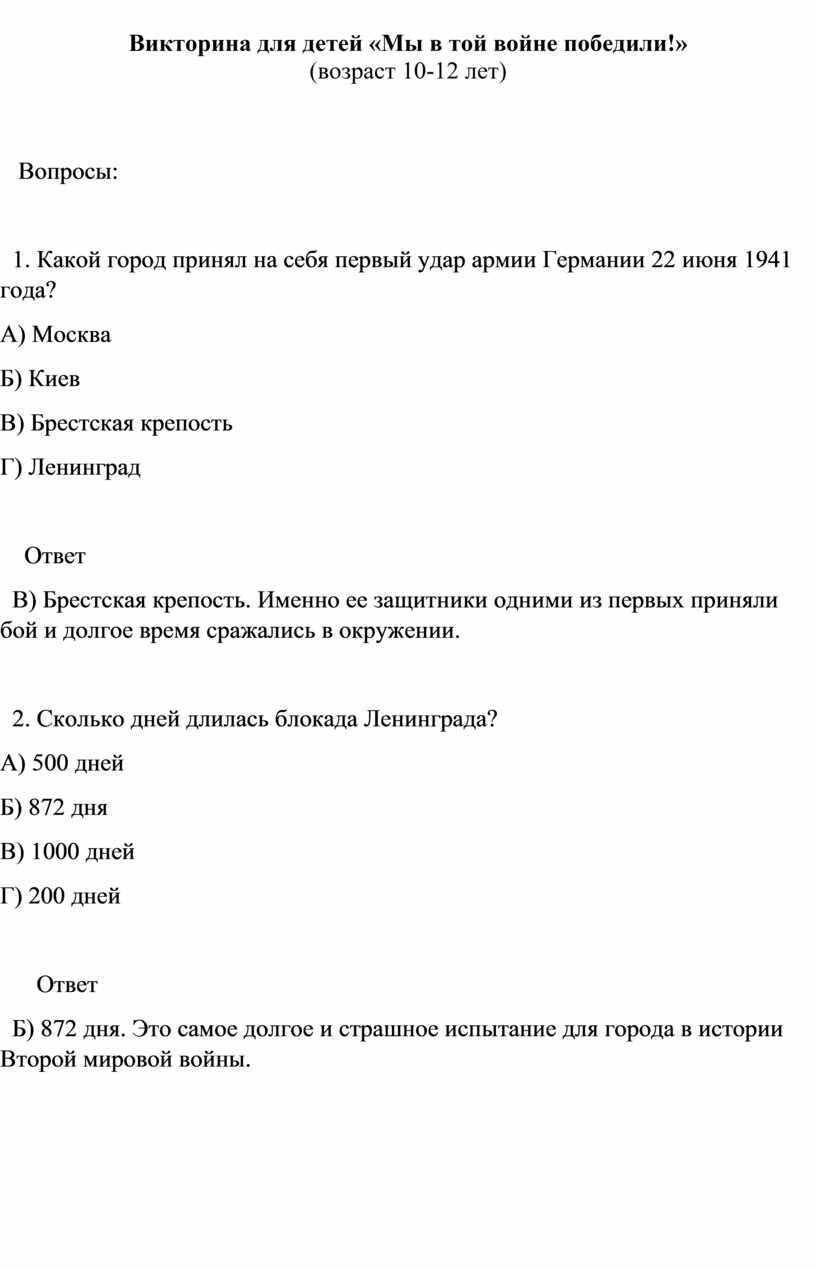 1. Какой город принял на себя первый удар армии Германии 22 июня 1941 года?