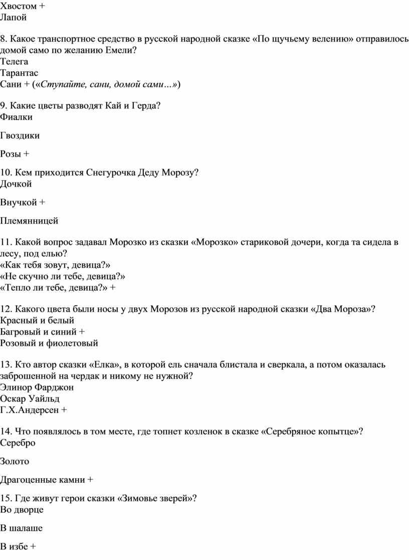 сказки, в которых царствует зима. Волшебная, чарующая, задорная. В викторине по