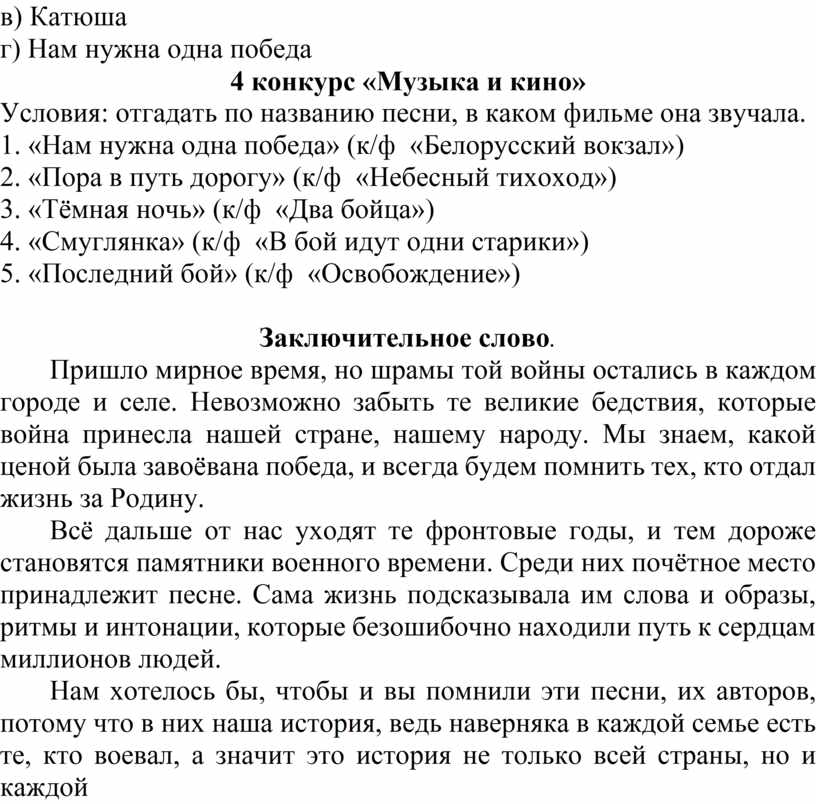 4 конкурс «Музыка и кино»