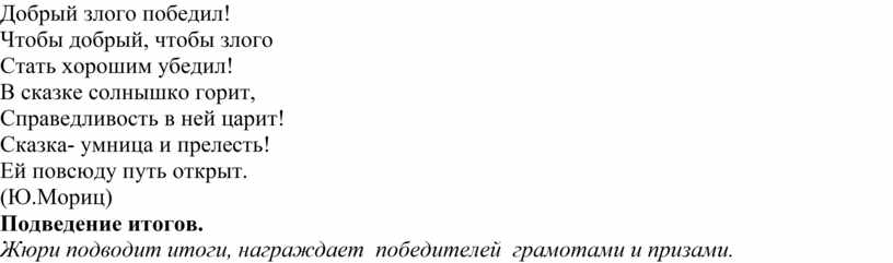 Жюри подводит итоги, награждает победителей грамотами и призами.